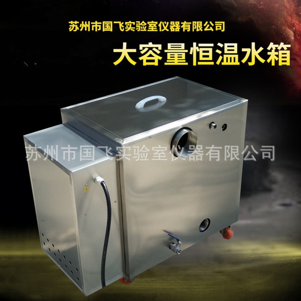 内胆均采用SUS304不锈钢材料制成(外胆按客户要求可选择冷板喷塑外壳);水箱采用微电脑温度控制系统,控温准;水箱加热管平均分布于水箱底部,并且有隔板与水箱工作区隔开,水箱工作区可根据需要放置各种物品和容器